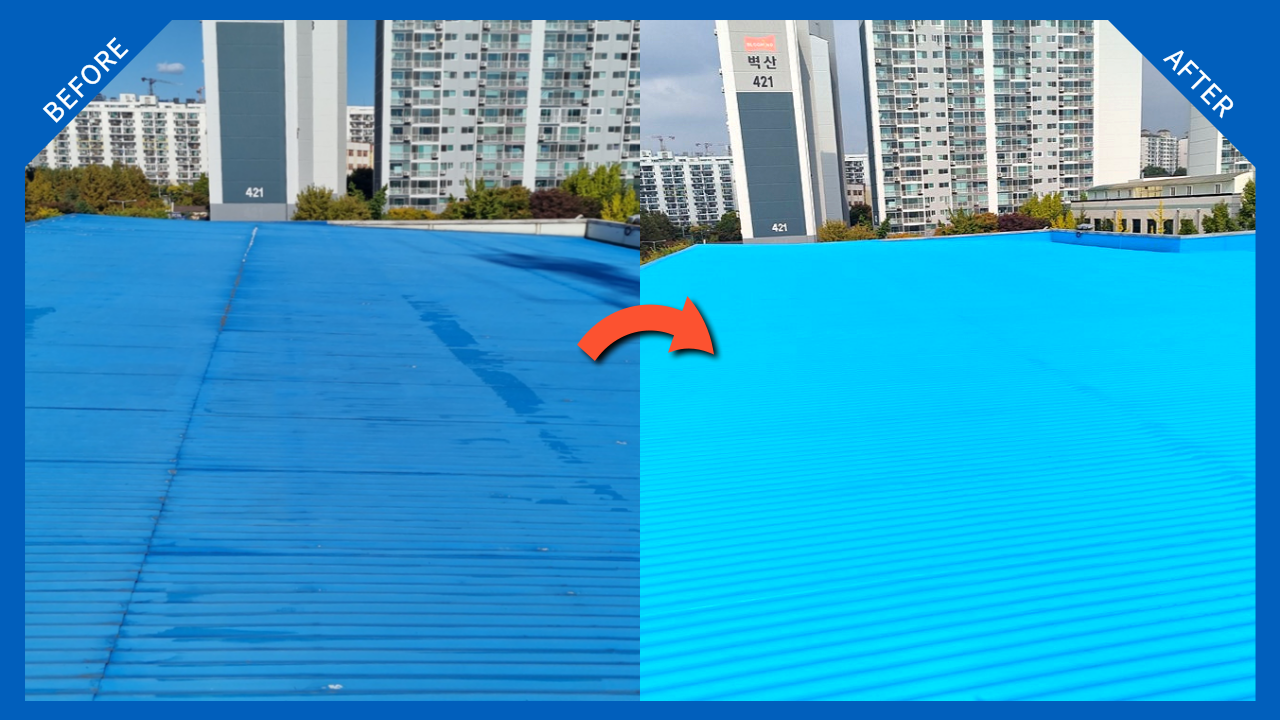 - 판넬 지붕 코팅/방수: 부식 방지, 단열 성능 향상, 누수 차단